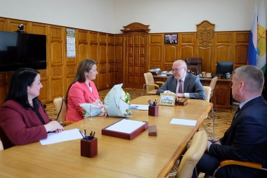 Сегодня губернатор Кировской области провел рабочую встречу с председателем общероссийской общественно-государственной организации Союз женщин России, известной телеведущей Марией Ситтель, которая сегодня в Кирове приняла участие в работе форума «Бизнес по-женски: гармония, поддержка, энергия».