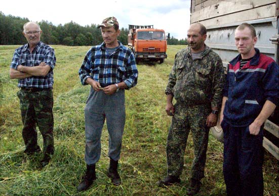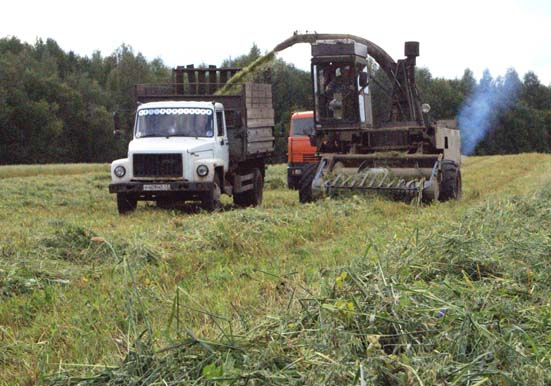 Скашиванием бобово-овсяной массы в валки на самоходной косилке Е-302 занимается Сергей Николаевич Червоткин. Её подбор и измельчение на силосном комбайне Е-280 ведёт Геннадий Васильевич Новосёлов. Перевозят массу из поля в траншею Олег Петрович Огородов на автомашине КАМАЗ, Александр Валентинович Нестеров на автомашине Газ-53, по мере необходимости к ним подключается Валерий Юрьевич Журавлёв, который в основном занимается вывозкой рулонов сена из поля на прифермскую территорию. Работа идёт споро. На заполнение тракторной тележки с нарощенными бортами массой не менее пяти тонны уходит около 4-минут. Трамбовкой массы на траншее на тракторе Т – 150, как обычно, занимается Николай Геннадьеич Родыгин. А он своё дело знает.