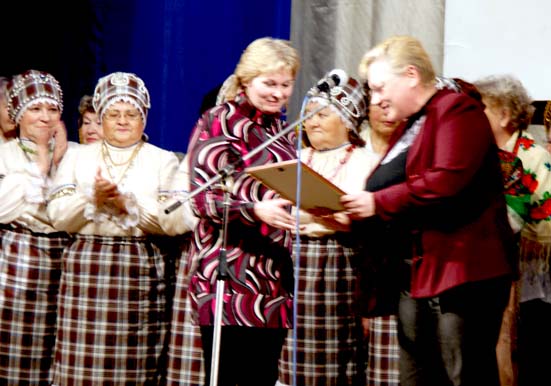 Директор областного Дома народного творчества В.Г. Соболев и методист по вокалу А.В. Шутова поблагодарили участников фестиваля за доставленную им радость и вручили каждому из творческих коллективов, принимавших участие в заключительном зональном фестивальном концерте, благодарственные письма Дома народного творчества.