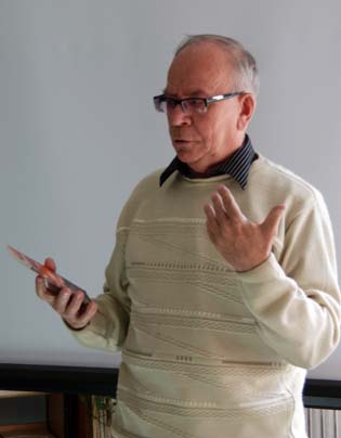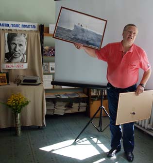 Одним из самых ярких было выступления нашего гостя из Республики Коми Н.Н. Герасимова, человека близкого Олегу Куваеву по духу, профессии и творчеству. «Мы с товарищами учились на геологическом факультете, - рассказал Николай Герасимович, - когда в 1974 году вышел его роман «Территория». Он буквально взорвал, расширил пространство. Мы, будущие геологи, зачитывались им. С тех пор многие из нас, в том числе и я, по настоящему «заболели» Куваевым. И тогда же мы всем курсом решили: поедем на север! Я выбрал Северный Урал – места, как оказалось, очень напоминающие Чукотку. Кстати, там, где мне пришлось работать, снимался фильм «Территория». Интересно, что во многих ролях, причём главных, снимались не профессиональные артисты, а наши заполярные геологи».
