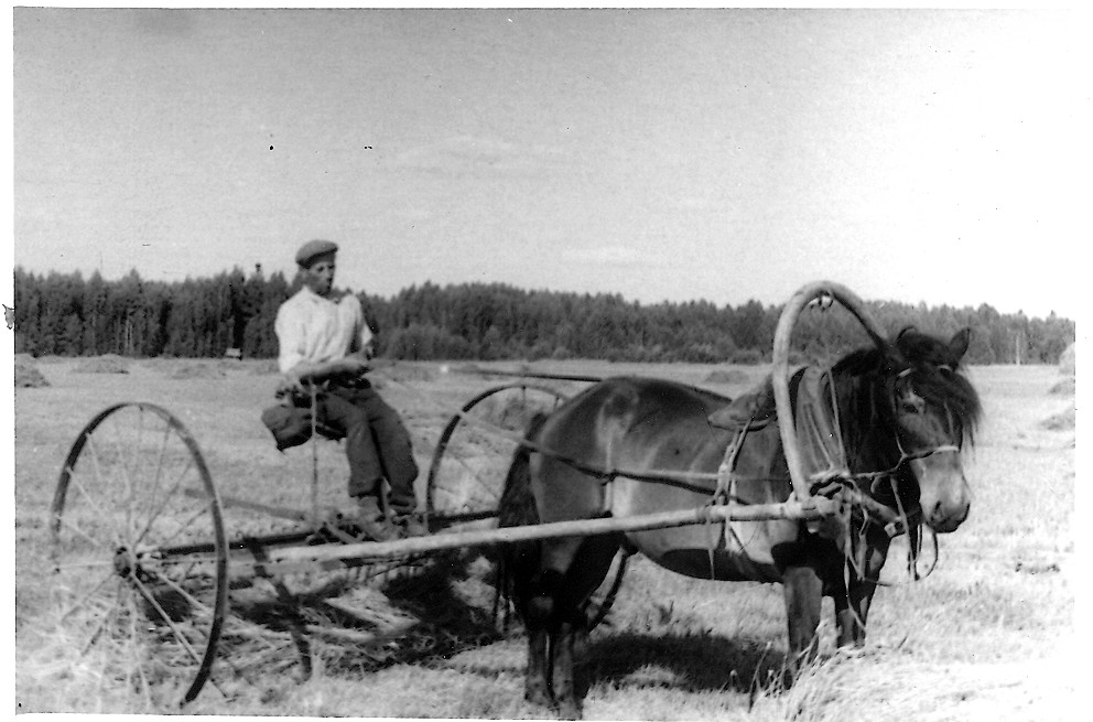 На конных граблях работал Н. Шишмаков (1965 - 1970 гг.)