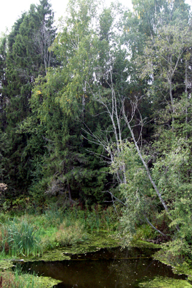 В 29-м квартале я наткнулся ещё на две землянки. Они находились в двух километрах от реки Сюзюм, у истоков ручья Чадовки, в густом сосновом лесу вдали от дороги. В одной из землянок сохранились земляные ступени, ведущие вниз. На сучьях рядом растущих сосен висел обрывок дезертирской гимнастёрки.