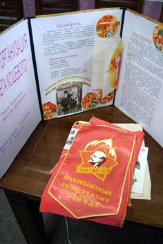 Ребята из Благовещенской школы Анастасия Шабалина и Александр Кубышев (руководитель Г.А. Пантелеева) собрали и систематизировали материал по истории пионерского движения в Благовещенской школе», а после доклада подарили районному краеведческому музею несколько экземпляров газеты «Пионерская правда», пионерскую атрибутику: пионерский галстук, отрядный флажок, вымпелы, ленту знаменосца пионерской дружины и т.п.
