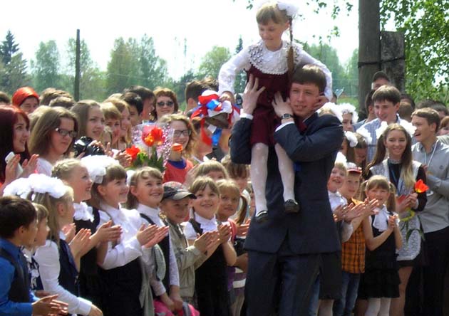 - Спасибо вам, учителя! – сказали в своём ответном слове те, для кого в этот день прозвенел последний школьный звонок. Его подали отличник учёбы одиннадцатиклассник Александр Пестов и первоклассница Надя Горохова.