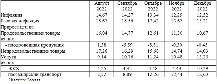 В декабре 2021 года мобильные операторы повышали стоимость линейки тарифных планов с целью компенсации растущих расходов, а в декабре 2022 года практически не изменили цены. По этой причине замедлился годовой рост цен на услуги связи. Это сдерживало рост цен в сфере услуг в целом.