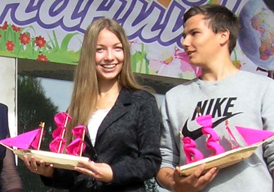 Малышей напутствовали в успешный поход за знаниями самые старшие - выпускники 11-го класса, после чего зазвучала звонкая трель школьного звонка. Почётное право подать его было предоставлено учащемуся 11-го класса Сергею Сысолятину и первокласснице Виктории Елсуковой. Ребята отправляются на первый урок – урок мира.