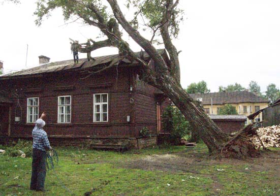 Прошедший ураган проверил готовность районных служб к чрезвычайным ситуациям и ещё раз напомнил о давно существующей проблеме ликвидации представляющих опасность деревьев. Эта работа проводится от случая к случаю, ввиду её большой затратности. Во вторник в посёлке работал специализированный автоподъёмник, при помощи которого удалось обрезать пять тополей. На это из районного бюджета потрачено 10 000 рублей.