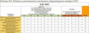 Представлен августовский рейтинг политической устойчивости глав регионов