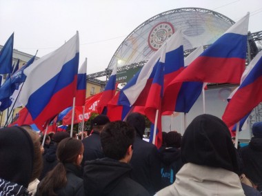 В честь события на главной площади города Кирова идет митинг-концерт "Мы вместе"