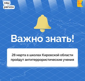 28 марта в 10:00 в образовательных учреждениях Кировской области будут проведены учения по действиям сотрудников охраны, администрации, персонала и обучающихся при чрезвычайных ситуациях.