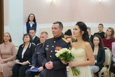 Супруги оставили подписи в почётной книге и обменялись обручальными кольцами.