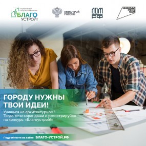 На сайте благо-устрой.рф начался прием заявок на участие в Национальном студенческом конкурсе «Благоустрой!» по разработке проектов благоустройства городских пространств. Конкурс проводит НО «Национальные приоритеты» совестно с Минстроем России и Институтом развития ДОМ.РФ.