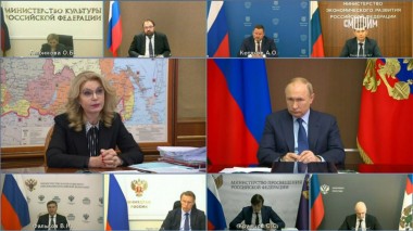Сегодня президент России Владимир Путин в формате видеоконференции провел совещание с правительством РФ. В совещании приняли участие председатель правительства РФ Михаил Мишустин, заместители председателя правительства РФ, федеральные министры.