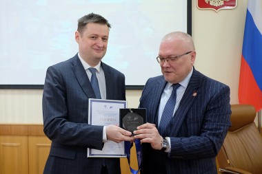 Александр Соколов вручил грамоту министру культуры Кировской области Даниилу Дворцову.