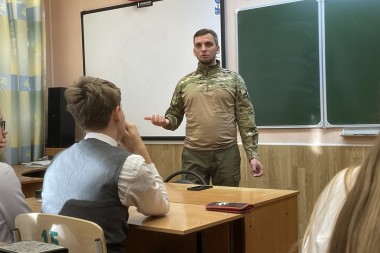 Так, перед учащимися Кировского физико-математического лицея выступил участник СВО Данил Зонов с позывным «Фара». Данил рассказал лицеистам о том, как современные технологии помогают бойцам защищать интересы нашей Родины, что такое настоящий патриотизм и как отличить фейковую информацию от истинной. Боец приветствовал лицеистов на торжественной линейке в честь памятной даты.