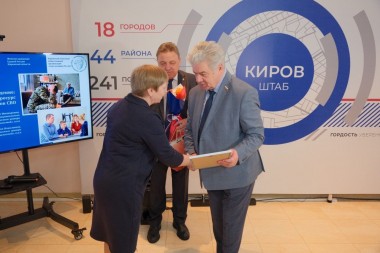 2 февраля в рамках визита в Киров сенаторы - Председатель Комитета Совета Федерации по Регламенту и организации парламентской деятельности Вячеслав Тимченко и Первый заместитель Председателя Комитета Совета Федерации Российской Федерации по обороне и безопасности Виктор Бондарев посетили Штаб общественной поддержки Кировской области, где вручили награды волонтерам-психологам, внесшим весомый вклад в оказание помощи участникам СВО и их семьям.