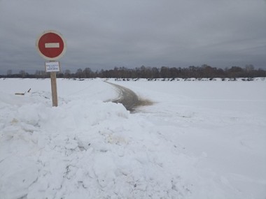 В местах, где ледовая переправа закрыта, выставляются запрещающие дорожные знаки и создаются искусственные заграждения. Напоминаем, что в местах запрета выхода на лед устанавливаются предупреждающие таблички выход (выезд) на лед строго запрещен!