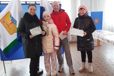 Семья Ирины и Дмитрия Шубиных из села Октябрь Подосиновского района участвует в общероссийском проекте «Всей семьей» и, проголосовав на избирательном участке, одновременно выполнила специальное задание проекта – «Всей семьей – на выборы».