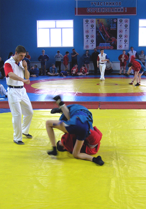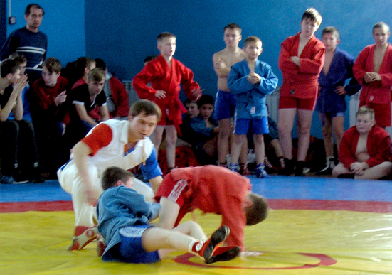 Борьба старших юношей 2000-2002 годов рождения была более жёсткой и техничной. Ведь многие из них занимаются самбо по 7-8 лет и побывали на соревнованиях самого высокого уровня. Сергей Дробязко - уверенная досрочная победа. Дмитрий Бурёхин - болевой на первой минуте. Алексей Перфилов - никаких шансов сопернику, Егор Сысолятин – первая минута, и соперник ведёт 2:0, но на второй минуте он хлопает ладонью по ковру – болевой и заслуженная победа. Кирилл Бушмакин - волевая победа по баллам. Первый круг пройден почти без потерь.
