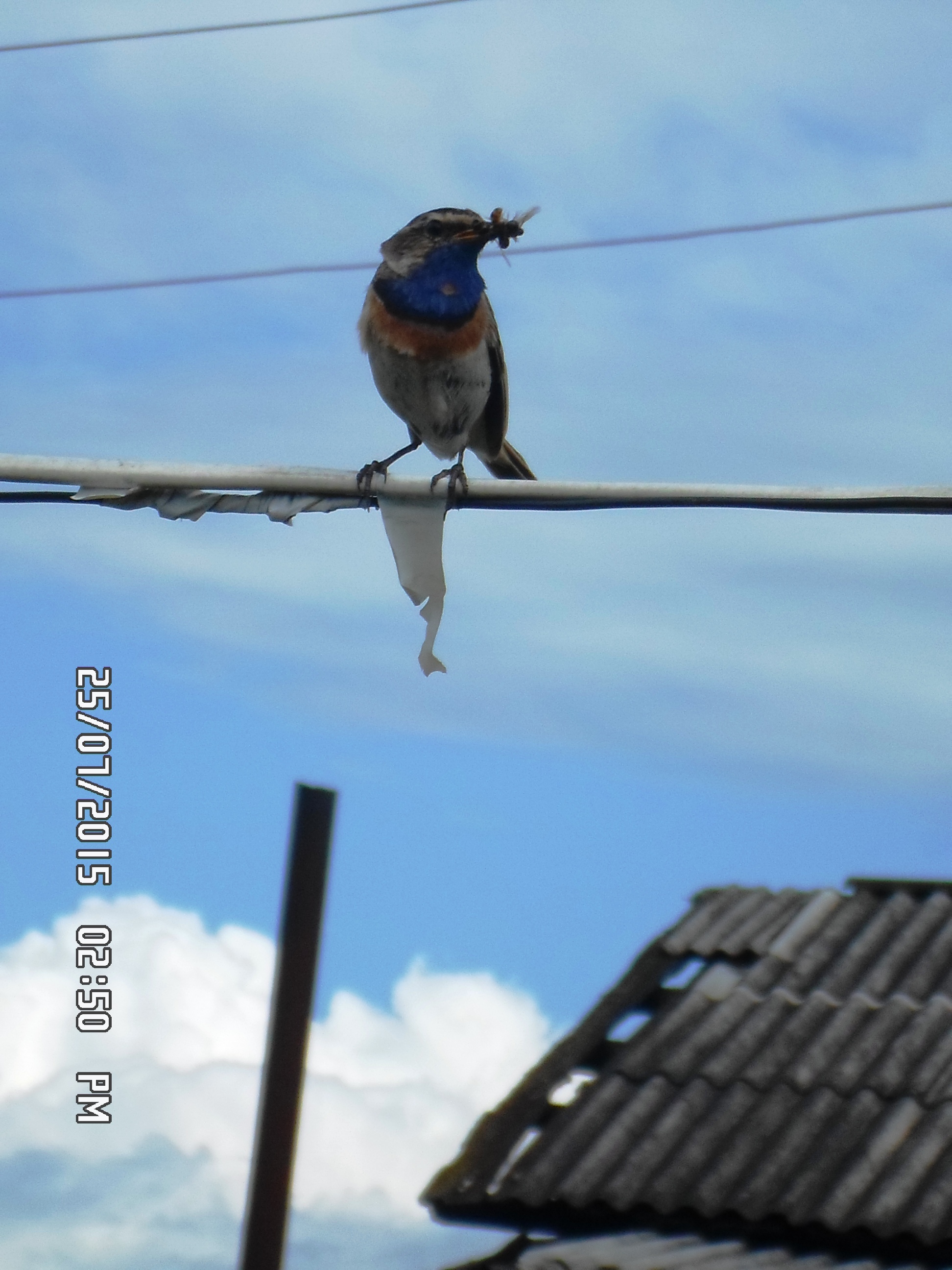 Однажды июльским деньком у нашего дома появилась очень красивая птичка: у неё была грудка ярко-синяя.